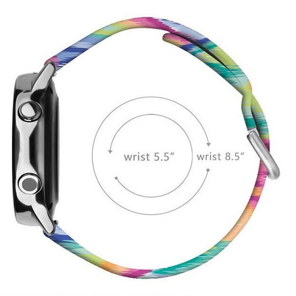 مدل طرحدار به مرور زمان دچار پوسیدگی نمیشود و شاهد تغییر و پاک شدن طرح آن نخواهید بود، ضدآب است و خیالتان را از بابت استفاده از آن در هر مکانی راحت میکند. بند طرحدار دارای دو دارای قفل سگکی فلزی است که از استیل ضد زنگ و رنگ ثابت ساخته شده است، اندازه بند نیز مانند بیشتر بندهایی که قفل سگکی دارند در بازه نسبتا خوبی قابل تغییر است.