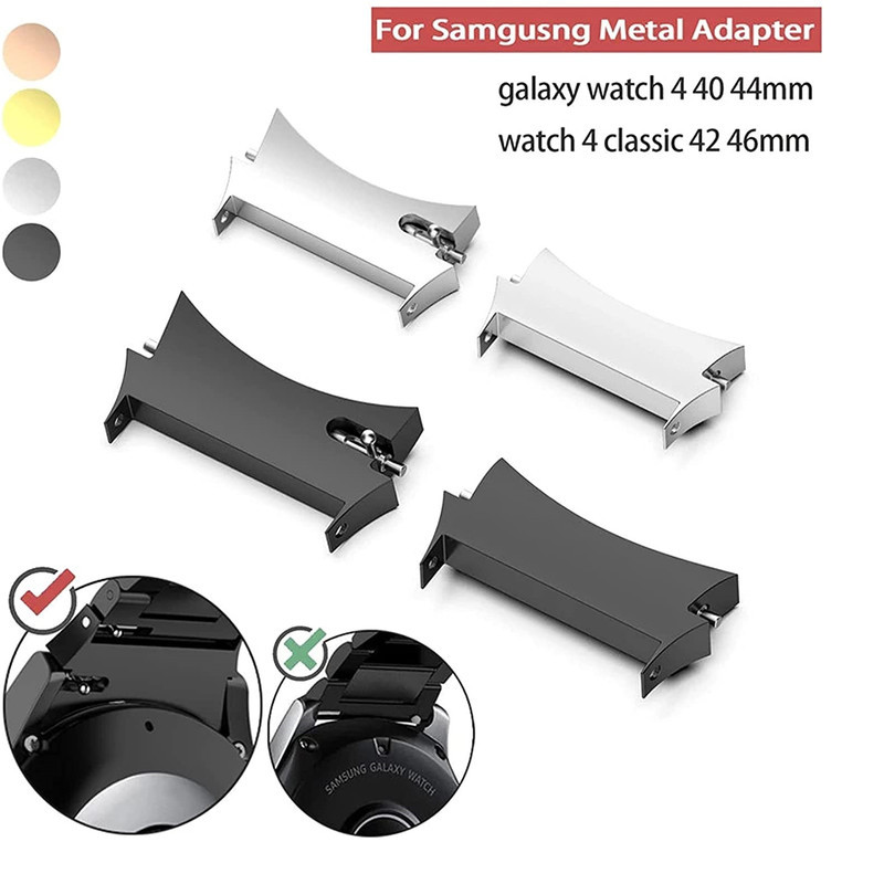 مشخصات: مبدل فلزی بند ساعت سامسونگ سری / 6 / 5 / Galaxy Watch 4 با ایم مبدل بند های فلزی سایز 20 به صورت زیبا تر و فابریک به روی ساعت شما نصب میشود و فضای خالی بین بند و ساعت را کامل پوشش میدهد